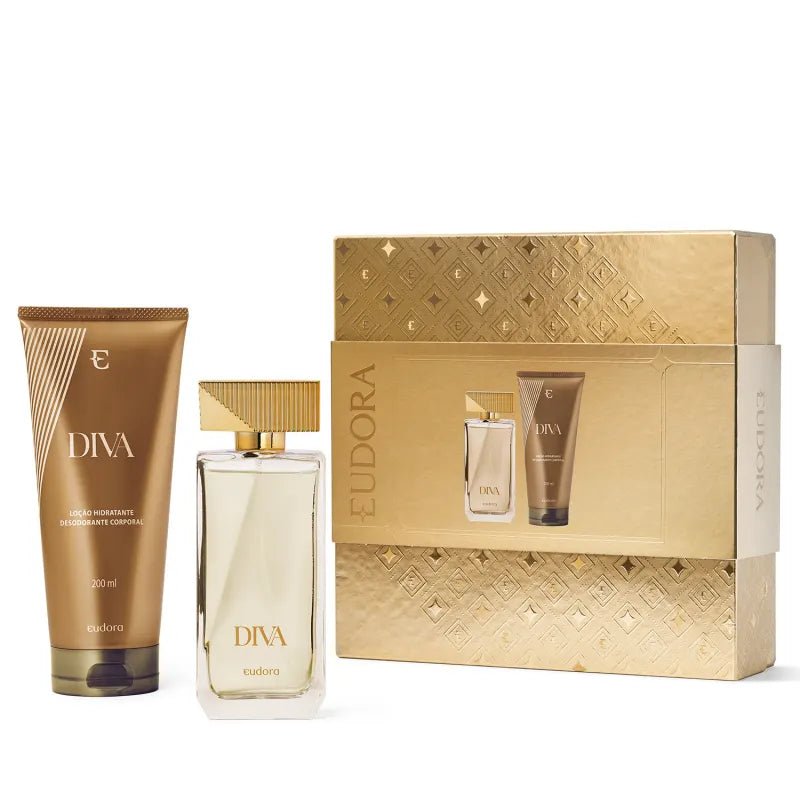 Para presentear mulheres que celebram sua própria luz, o Kit Diva é a escolha ideal! Com a fragrância Oriental Floral do Desodorante Colônia Diva e a Loção Hidratante Desodorante Corporal o kit proporciona uma experiência sensorial completa, revelando o brilho único de quem o usa. Um presente de natal inesquecível! DIVA DESODORANTE COLÔNIA Esta fragrância feminina traz uma sofisticada combinação das notas olfativas de Ameixa Negra e Pera, que, unidas a um Bouquet Floral e à doçura envolvente do caramelo, hipnotizam e revelam o seu brilho único. Família Olfativa: Oriental Floral. LOÇÃO HIDRATANTE DESODORANTE CORPORAL A Loção Hidratante em tudo o que você precisa para realçar o seu brilho único: Textura leve e absorção imediata Proporciona hidratação por 48 horas Ação desodorante Deixa a pele macia e levemente perfumada Nenhum produto Eudora é testado em animais, ou seja, este item possui selo Cruelty Free. Este kit contém: 01 Desodorante Colônia 100ml 01 Loção Hidratante Desodorante Corporal 200ml