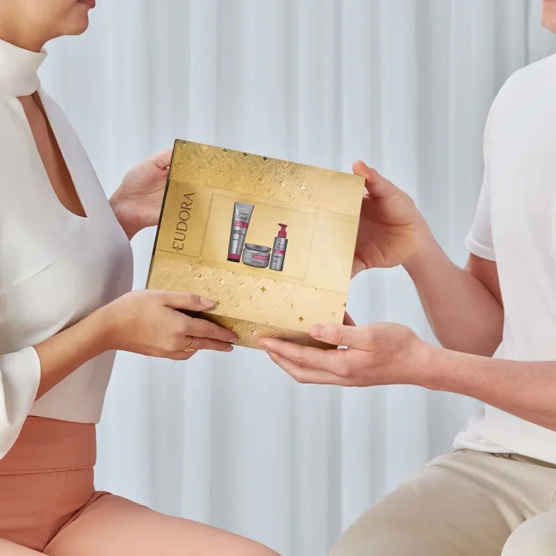 Para um cabelo radiante e impecável, presenteie com o Kit Siàge Glow Expert . Composto por Shampoo, Balm Disciplinante e Máscara , proporciona limpeza suave, hidratação profunda, redução de frizz e efeito glow intenso. Sua fórmula com Flor de Geleiras e Glossfix garante fios disciplinados, macios e brilhantes como nunca. Um presente de natal Eudora: especial para manter os fios saudáveis e um brilho extraordinário! SHAMPOO O Shampoo Siàge Glow Expert limpa os fios sem ressecar, garantindo muito brilho para seus cabelos. Sua fórmula contém Flor de Geleiras que recria o banho gelado nos fios, e Glossfix , um componente com alta capacidade de refletir a luz. BALM DISCIPLINANTE O Balm Disciplinante Siàge Glow Expert garante fácil aplicação e textura leve que não pesa os cabelos. Sua fórmula garante efeito glow , redução da porosidade dos fios, proteção térmica , redução do frizz e cabelos 2x mais disciplinados. MÁSCARA A Máscara Capilar Siàge Ultra Glow Expert garante uma película invisível que uniformiza a cutícula do cabelo, entregando reparação integral do fio , com muita maciez, brilho e hidratação profunda . Seus ativos recriam o banho gelado nos fios, refletindo a luz e fixando o brilho . Nenhum produto Eudora é testado em animais, ou seja, este item possui selo Cruelty Free. Este kit contém: 01 Shampoo 250ml 01 Máscara Capilar Ultra Brilho 250g 01 Balm Disciplinante Finalizador Capilar 100ml